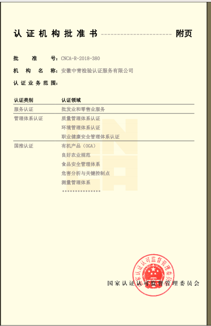 安徽省“食安安徽”品牌認證:評價是根據(jù)國際通行的合格評定方式,依據(jù)“食安安徽”品牌認證評價標準及相關(guān)規(guī)定,對申請“食安安徽”認證評價的食品生產(chǎn)經(jīng)營者和特定區(qū)域進行的第三方認證評價活動。“食安安徽”品牌認證評價標準包括企業(yè)認證和區(qū)域評價兩大類,企業(yè)認證對象包括食用農(nóng)產(chǎn)品生產(chǎn)者、食品生產(chǎn)企業(yè)、食品流通企業(yè)、餐飲服務(wù)企業(yè),區(qū)域評價對象包括食品生產(chǎn)基地、食品生產(chǎn)園區(qū)、餐飲安全街區(qū)、食品安全小鎮(zhèn)、安徽省食品安全示范縣(市、區(qū))。